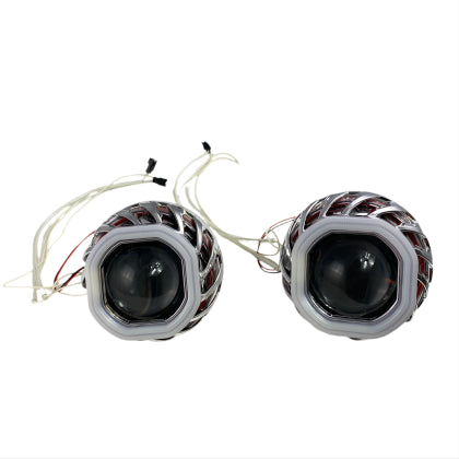 Биксенон лупи за вграждане MORIMOTO MINI SPIRAL 2.5" - със син квадратен вътрешен ринг и червен външен ринг