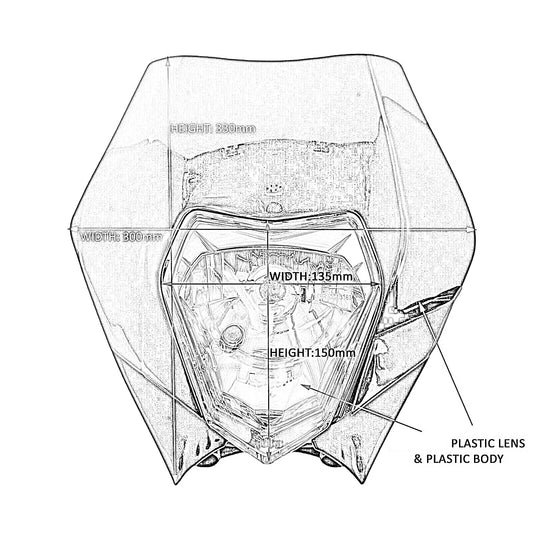 Маска с Фар за мотор, мотоциклет Бяла с къси и дълги светлини - Универсален модел за ENDURO / Trail / Streetfighter