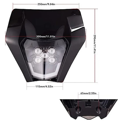 Маска с Фар за мотор, мотоциклет Черна с къси и дълги светлини - Универсален модел за ENDURO / Trail / Streetfighter