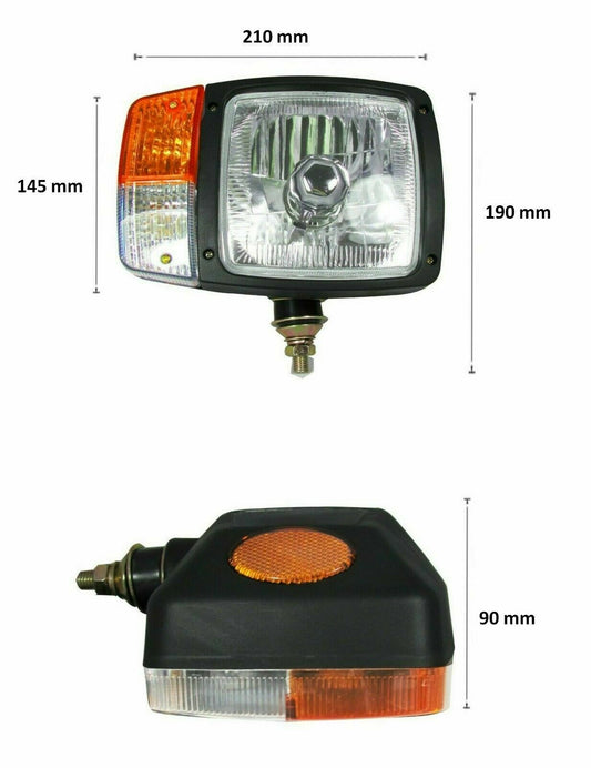 Комплект 2 Броя Кристални Фарове с Кабел, Фар с Mигач, Габарит, За Трактор Багер Комбайн Фадрома Снегорин почистваща техник и др.