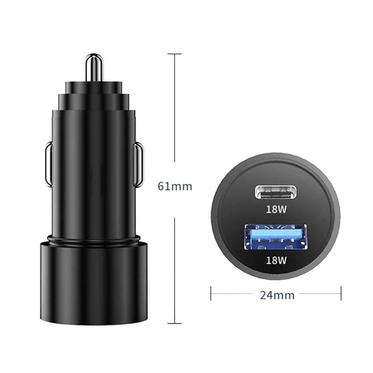 Универсално USB Зарядно За Автомобил, 2x18W, 3 A, Метален Корпус, 12V - 24V, Сребрист Цвят, Подсветка Синя LED Светлина, USB + Type C, Бързо Зареждане