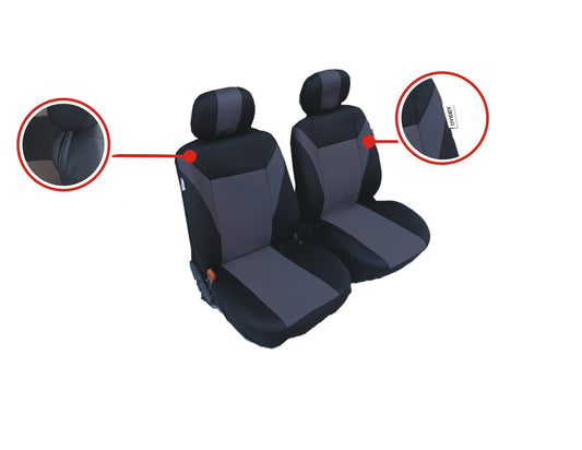 1+1 Универсални калъфи за предни седалки - релефни - еко кожа и текстил - черно със сиво