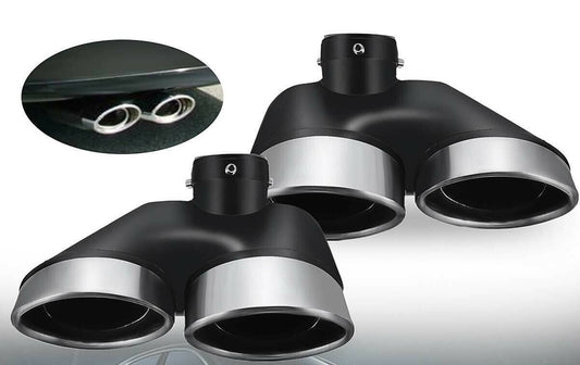 Нов Универсален Двоен Хромиран Накрайник За Ауспух За Автомобил 57 мм Диаметър Черен