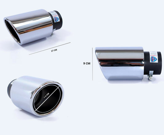 Универсален Хромиран Накрайник За Ауспух - вход от 35мм до 60мм, диаметър 90мм, изход 75мм, дължина 140мм