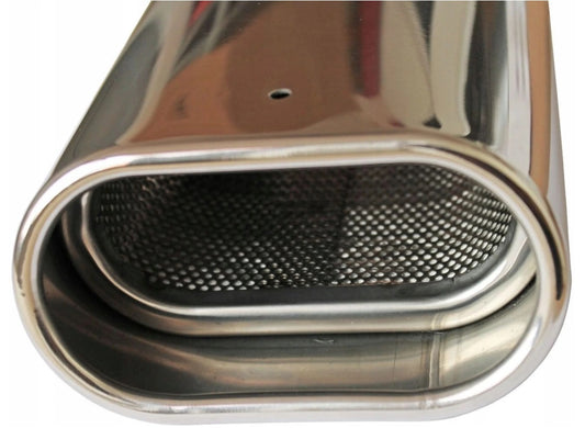 Универсален накрайник за ауспух, плосък овал 120 х 65 мм , вход макс 52мм - полирана неръждаема стомана