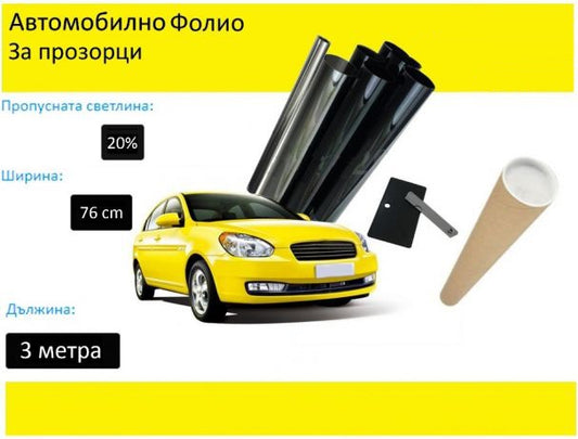 76 СМ X 3 Метра 20% Тъмно Черно Авто Фолио за затъмняване на стъкла прозорци + нож шпатула и кутия
