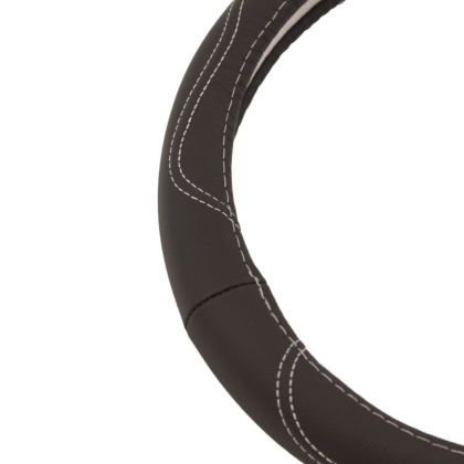 Кожен калъф за волан 38см - Waves - черен цвят с бели шевове