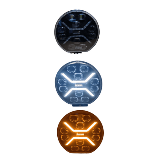 Диоден фар с бял+оранжев габарит LED + DRL 70W Ø 220мм 9" 12V/24V Е-Mark Е9