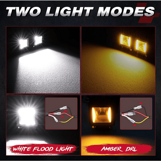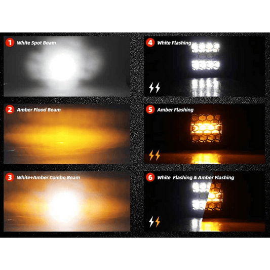 Комплект 6бр квадратни LED работни светлини, бяла 6500К и оранжева/блиц 3000K светлина, 6 режима, 12/24V