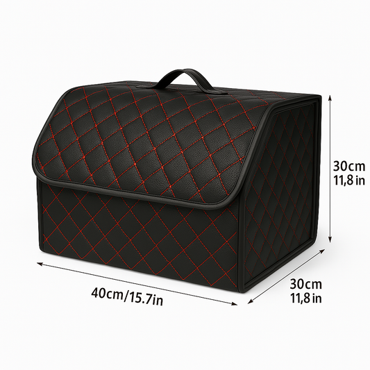 Луксозен кожен органайзер за багажник сгъваема кутия за съхранение с червен шев 55x30x30 см