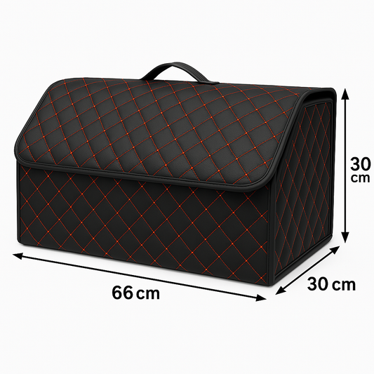 Луксозен кожен органайзер за багажник сгъваема кутия за съхранение с червен шев 66x30x30см
