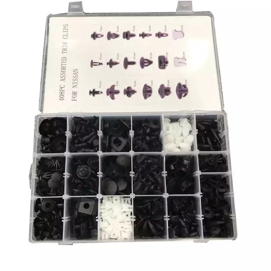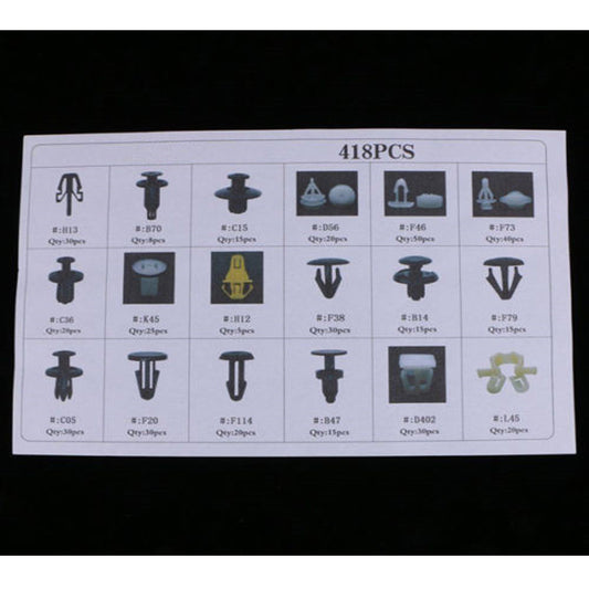 Универален комплект от 421 броя фиксиращи авто клипсове закопчалки копка - щипка за кори лайсни панели табло и др. със инструмент за демонтаж