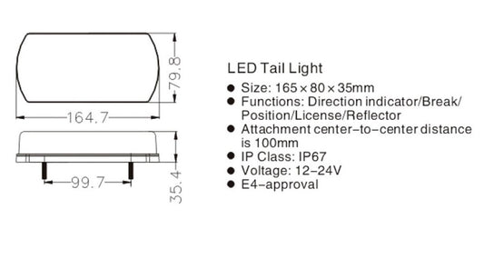Стоп Светлина 4 Функции, Е-Мark, 12V-24V, Ремарке, Каравана, Камион, Агро Техника, Земеделски Машини