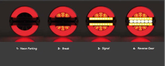 Комплект от 2 броя Кръгли LED Светодиодни стоп задни светлини с неон Neon ефект тип Хамбургер 12V-24V E9 124 mm x 37,5 mm