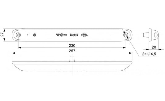 LED Светодиоден Страничен Габарит, Бял, Червен цвят, 110mm x 28mm, 12V-24V