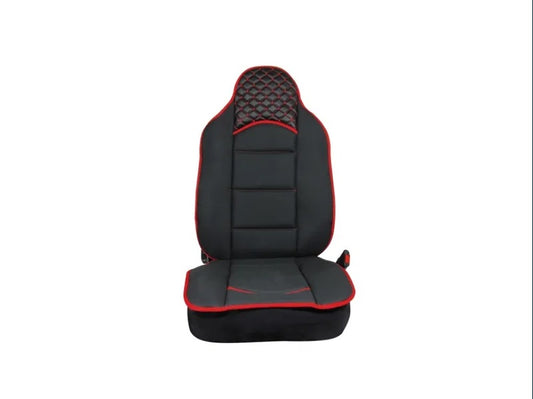 Комплект Универсална Тапицерия Тип Масажор 1+1 за Предни Седалки Лукс Черно-Червено, Текстил и Еко Кожа