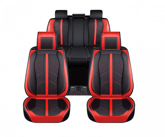 Пълен Комплект Универсална Авто Тапицерия, Еко Кожа, Лукс, Sport, Червено - Черно