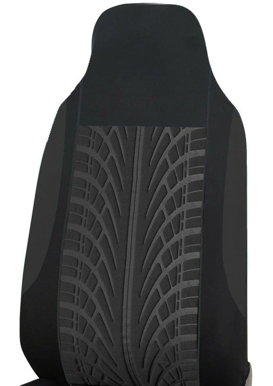 1+1 СЪС СЛЯТ ПОДГЛАВНИК ВИСОКИ КОМПЛЕКТ УНИВЕРСАЛНИ КАЛЪФИ, ТАПИЦЕРИЯ ЗА ПРЕДНИ СЕДАЛКИ ЗА АВТОМОБИЛ , БУС , ДЖИП ЦВЯТ СИВО-ЧЕРНО , ТЕКСТИЛ