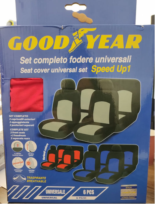 Универсална тапицерия пълен комплект калъфи за предни и задни цели седалки от текстил в червено-черно Goodyear Гудиър
