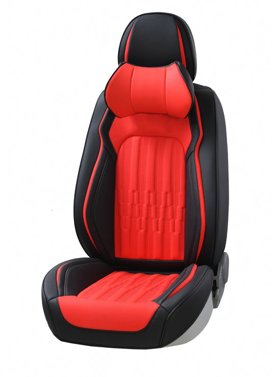 Пълен Комплект Универсална Тапицерия, Калъфи За Автомобилни Седалки Лукс Еко Кожа в Черно и Червено, с възглавнички