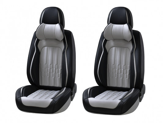 Пълен Комплект Универсална Тапицерия, Калъфи За Автомобилни Седалки Лукс Еко Кожа в Черно със Сиво, с възглавнички