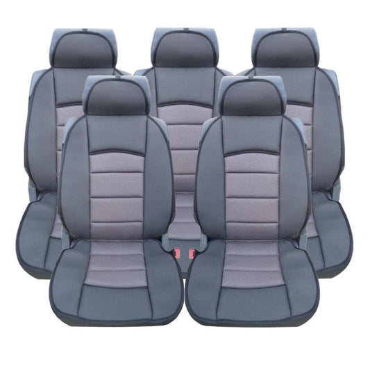 Пълен Комплект Калъфи Тапицерия За Автомобил За Предни и Задни Седалки Еко Кожа Сиво Черно 8 Части