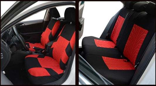 1+1 Нова универсална тапицерия за предни седалки , калъфи за предни седалки за автомобил бус ван текстил в червено-черно