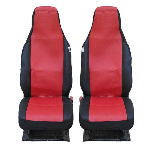 1+1 Комплект универсални калъфи / тапицерия за предни седалки на автомобил / бус / джип - еко кожа - червено с черно