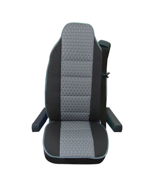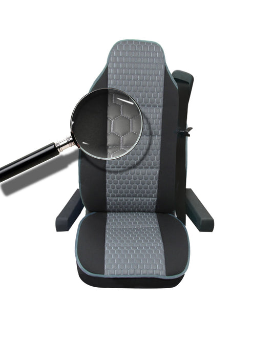 Универсален калъф за седалка на камион - релефен - еко кожа и текстил - Volvo, DAF, Man, Scania, Mercedes, Iveco - черно със сиво