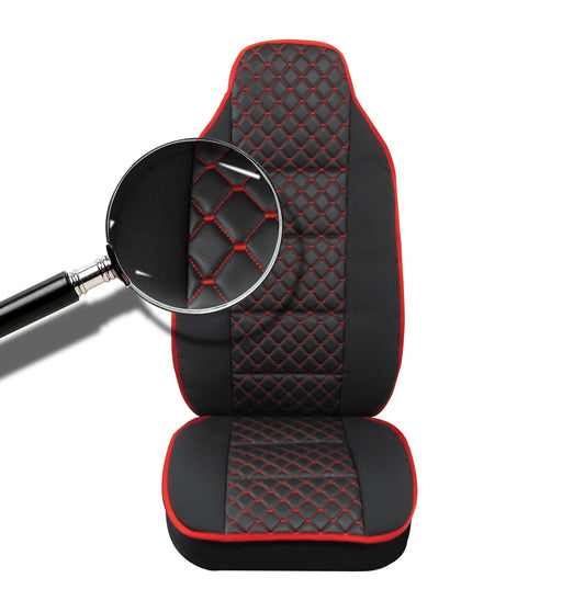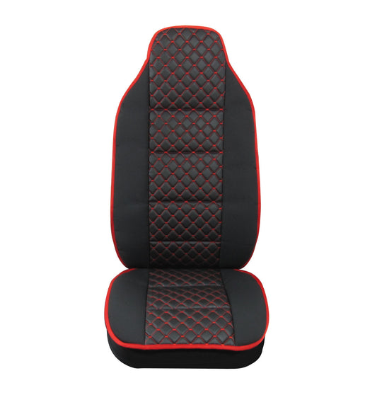 Универсален калъф за седалка на камион - релефен - еко кожа и текстил - Volvo, DAF, Man, Scania, Mercedes, Iveco - червено с червен конец