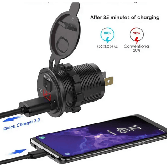 Универсално QC USB 3.0 бързо зарядно за вграждане с VOLT -метър