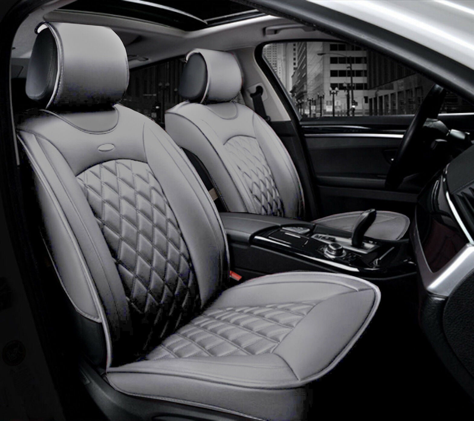 1+1 Комплект от 2 бр. Универсална Кожена Тапицерия Сиви Калъфи За Предни Седалки Сиво