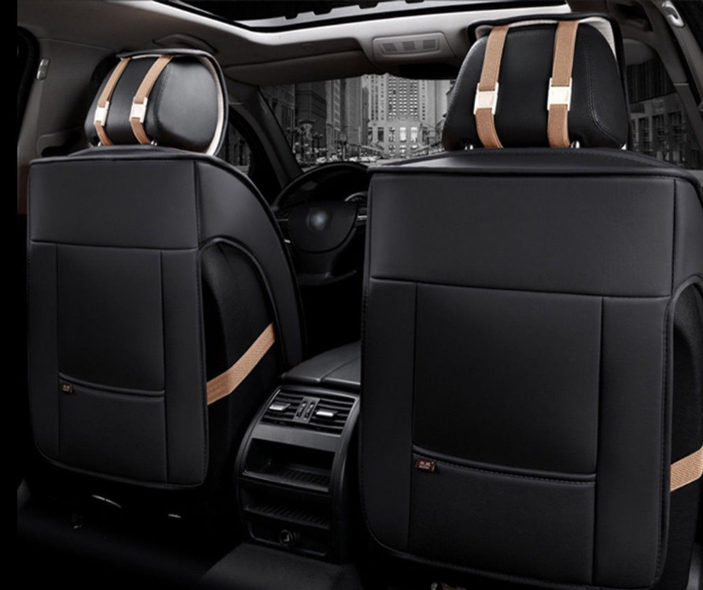 1 + 1 Комплект от 2 броя Универсална Кожена Тапицерия Калъфи За Предни Седалки Черно