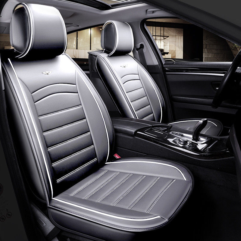 1+1 Комплект от 2 броя Универсална Кожена Тапицерия Калъфи За Предни Седалки в сиво