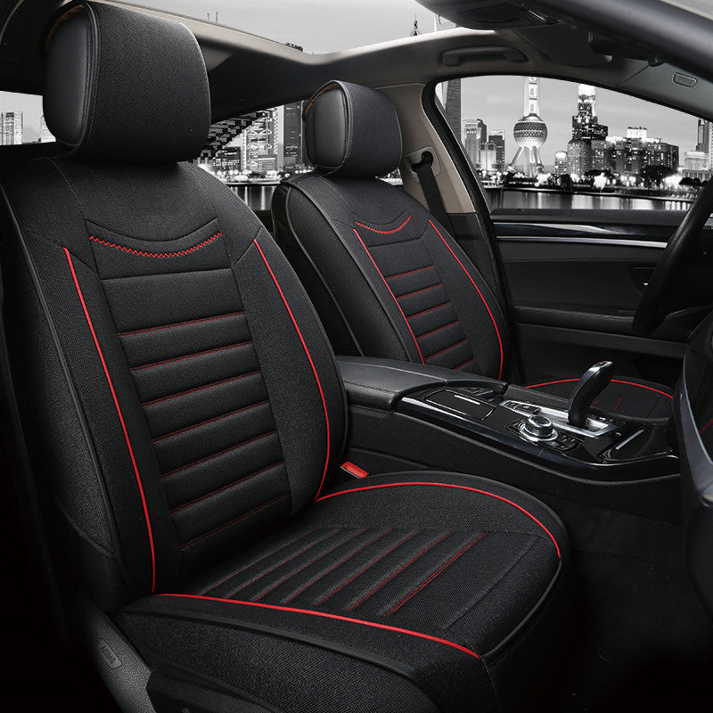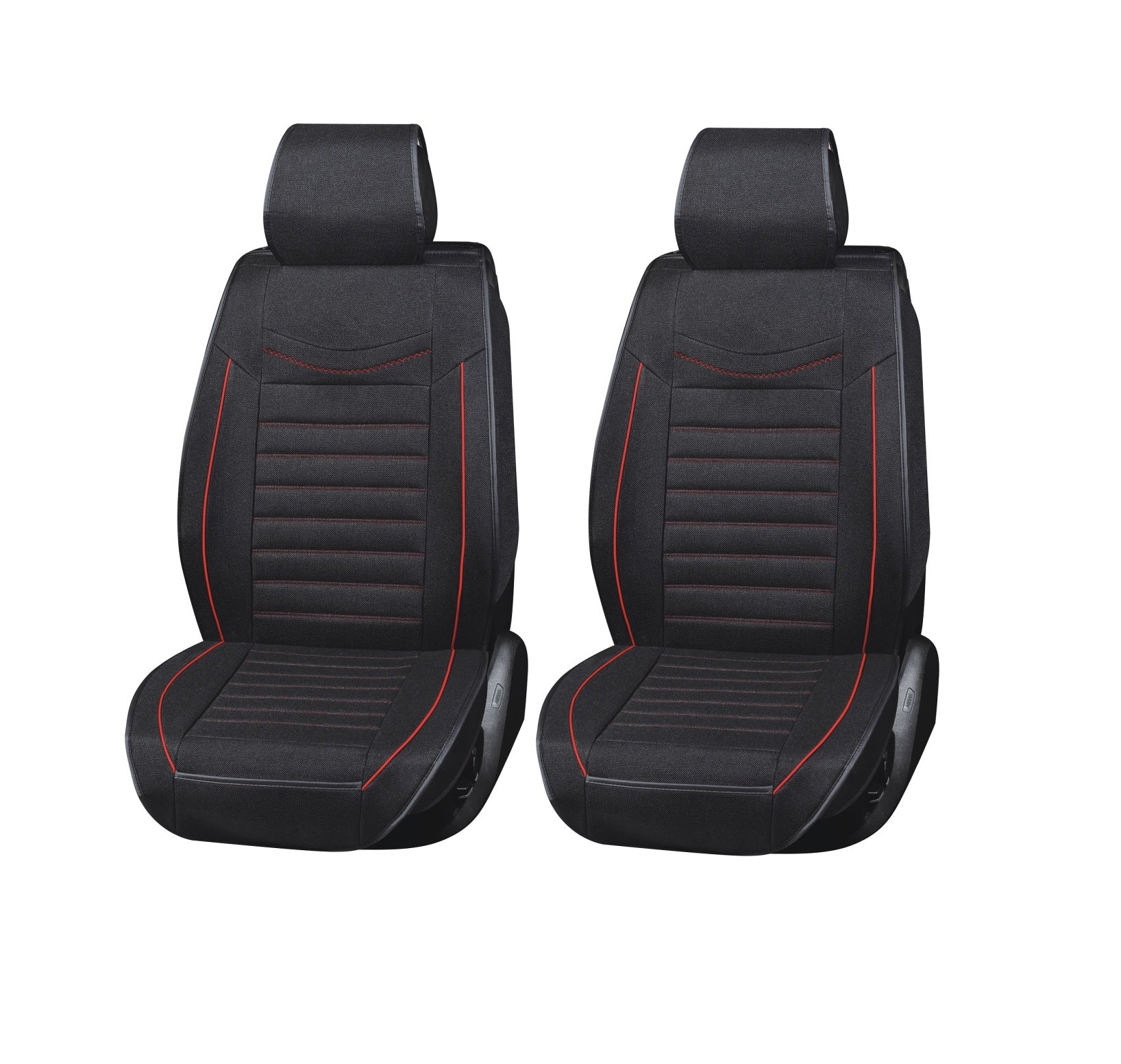 1+1 Комплект от 2 броя Универсална Тапицерия Калъфи За Предни Седалки Черна с Червен Шев Текстил