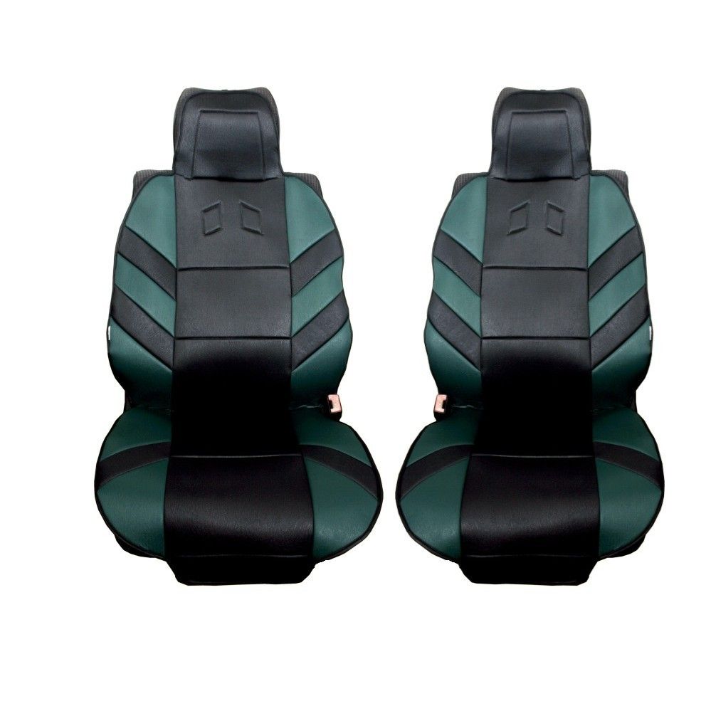 1 + 1 Универсални калъфи, тапицерия за предни седалки, Масажор, високо качествен текстилен материал, Зелено-Черно