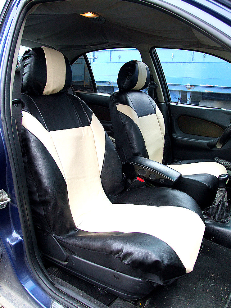 1+1 с отделен подглавник Комплект от еко кожа за предни седалки за автомобил Характеристики: Цвят: БЕЖОВО-ЧЕРНО Нова универсална тапицерия за автомобилни седалки Комплектът се състои се от 4 части включващи калъфки за предните седалки и подглавници Изработени са от различни висококачествени материали- еко кожа Удобни за използване Протекторите защитават седалките на вашия автомобил, като запазват оригиналната тапицерия от замърсяване и износване Създават комфортна атмосфера във вашия автомобил Съвместими с повечето модели автомобил Ушити са така, че да позволяват свободно употребата на предпазни колани, подлакътници, подглавници Съвместима със седалки с въздушни възглавници Подарете си удоволствие и стил Идеални за подарък! Идеални за дълъг път!