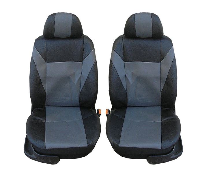 1+1 УНИВЕРСАЛНИ КАЛЪФИ, ТАПИЦЕРИЯ ЗА ПРЕДНИ СЕДАЛКИ ЗА АВТОМОБИЛ , БУС , ДЖИП ОТ ЕКО КОЖА , ЦВЯТ СИВО-ЧЕРНО