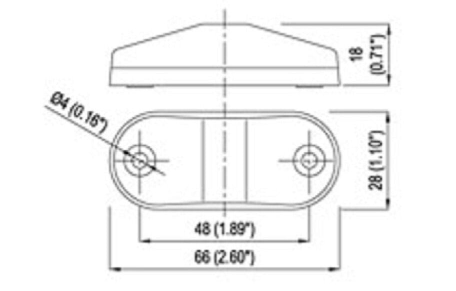 SMD LED маркер / габарит / токос - / червен / - - за бусове, камиони, ремаркета Размери: Дължина: 66mm Ширина: 27mm Височина: 18mm Разстояние между болтовете: 45mm *** Цената е за 1 брой *** Работно напрежение: 12V