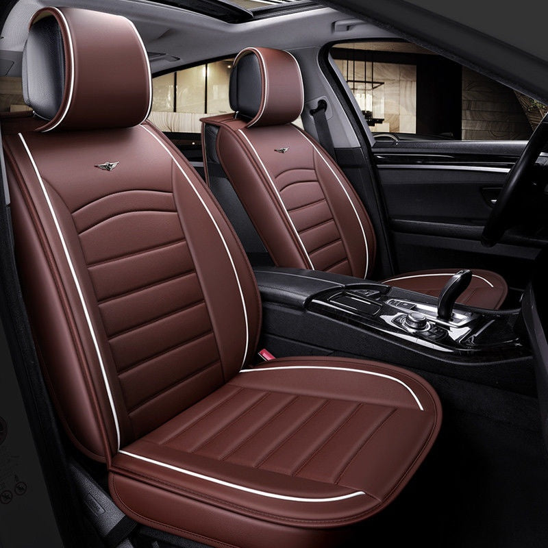 Луксозна тапицерия Изработена от висококачествена PU еко кожа и мека пяна, осигуряващи удобно чувство при сядане. Ръчно шита. Универсален дизайн, подходящ за всички автомобили. Дизайн, съвместим с airbag - въздушни възглавници. Устойчивост на износване, добър водоустойчив ефект и силна огнезащитна способност. Лесна инсталация. Цялостен дизайн, покрива предната и задната част на седалката. За една предна седалка
