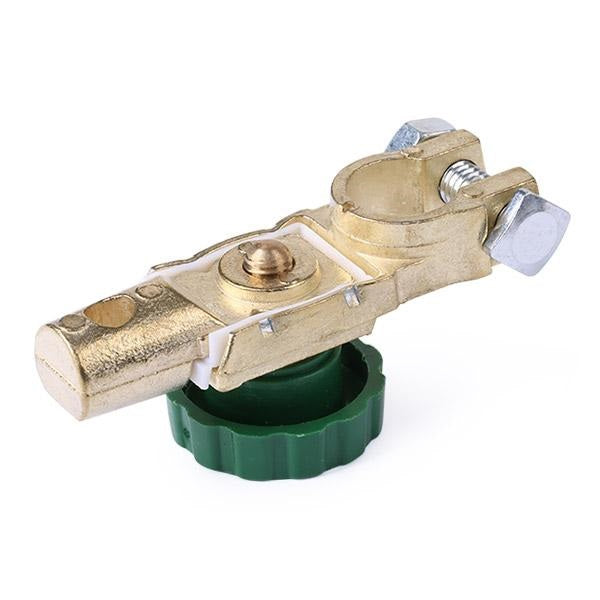 Акумулаторен прекъсвач за автомобили, каравани и камиони. За избягване на къси съединения и случайно разреждане на батерията. Монтаж и демонтаж без необходимост от инструменти. Захранване към акумулаторната клема: с винт. Предназначен за свързване към отрицателната клема на акумулатора при макс. 17,5 мм в диаметър. Материал: медно покритие от цинкова сплав Захранване: 12 / 24V Капацитет до 500А Мощност: 175A MAX Дължина: 8,5см Широчина: 3,5 см Употреба: Превключвателят (зелен) се завърта и разхлабва 2-3 пъти и цялата кола се изключва. Включете захранването и затегнете превключвателя правилно, за да стартирате автомобила. Метод на инсталиране: 1. Проверете отрицателния полюс на батерията и щипката (оригинален конектор на батерията) за корозия (бял прах) или почистете от мръсотията преди инсталиране (за да предотвратите лош контакт между батерията и превключвателя на батерията). 2. Преди да инсталирате превключвателя на батерията, затегнете зеленото копче и след това го монтирайте на автомобила, след което проверете дали е разхлабен, уверете се, че е инсталиран и сте готови.