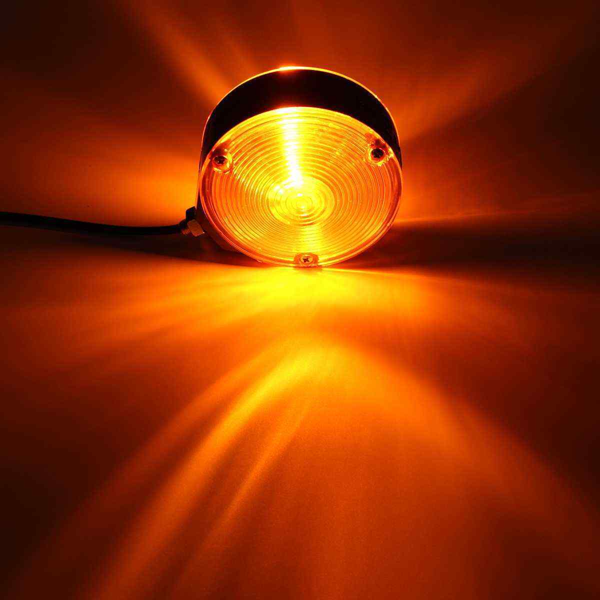 Състояние: нов Напрежение: 12V-24V (в зависимост от това каква крушка е инсталирана) Тип крушка - 21/5w (без включена крушка) Материал: пластмаса Цвят на светлината: оранжев (кехлибарен) Размери: Диаметър: 107 mm / 4.21 Дължина на проводника: 180 mm / 7.10 Дълбочина: 66 mm / 2.6 Монтаж: Универсален пасва на DC 12-24V ремаркета, каравани, камиони като Scania, Volvo, MAN, DAF, Mercedes и др.