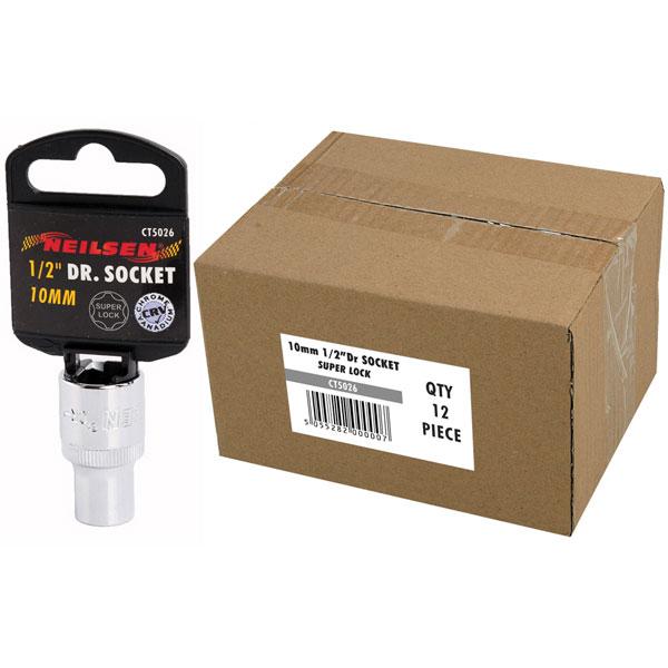 10мм - Вложка Хром Ванадий Super Lock Инструментите на марка Neilsen са висококачествени и надежни, което ги прави подходящи както за професионална, така и за любителска употреба. - За 1/2 тресчотка / върток - Хром Ванадий - Super Lock