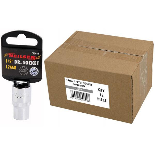 12мм - Вложка Хром Ванадий Super Lock Инструментите на марка Neilsen са висококачествени и надежни, което ги прави подходящи както за професионална, така и за любителска употреба. - За 1/2 тресчотка / върток - Хром Ванадий - Super Lock