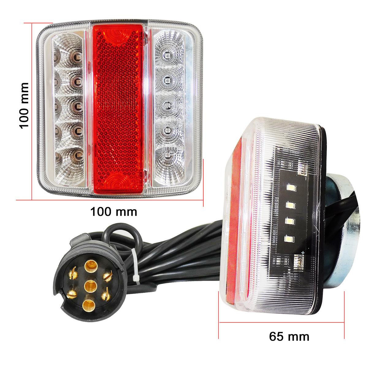 Готова за ползване, водоустойчива LED - инсталация за ремарке, колесар, каравана, репатрак, хедер, торачка, платформа за кошери, пътно строителна машина, валяци Инсталацията е снабдена със здрави магнити за бърз монтаж и демонтаж. Възможност да се ползва за няколко ремаркета. Изключително качествен материал - поликарбонат. Много добра светлина, видима отдалече. Петфункционално тяло - габарит, стоп и мигач, вграден светлоотразител и осветител за номера / регистрационната табел /. Размери: - височина 100мм. - широчина 100мм. - дълбочина 65мм. - дължина на кабела 7.50 метра. - дължина на кабела между стоповете 2.50 метра. - букса 7 пина
