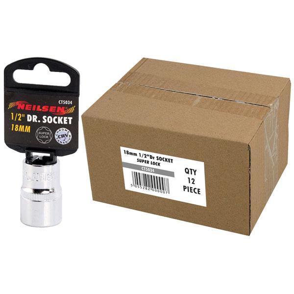 18мм - Вложка Хром Ванадий Super Lock Инструментите на марка Neilsen са висококачествени и надежни, което ги прави подходящи както за професионална, така и за любителска употреба. - За 1/2 тресчотка / върток - Хром Ванадий - Super Lock