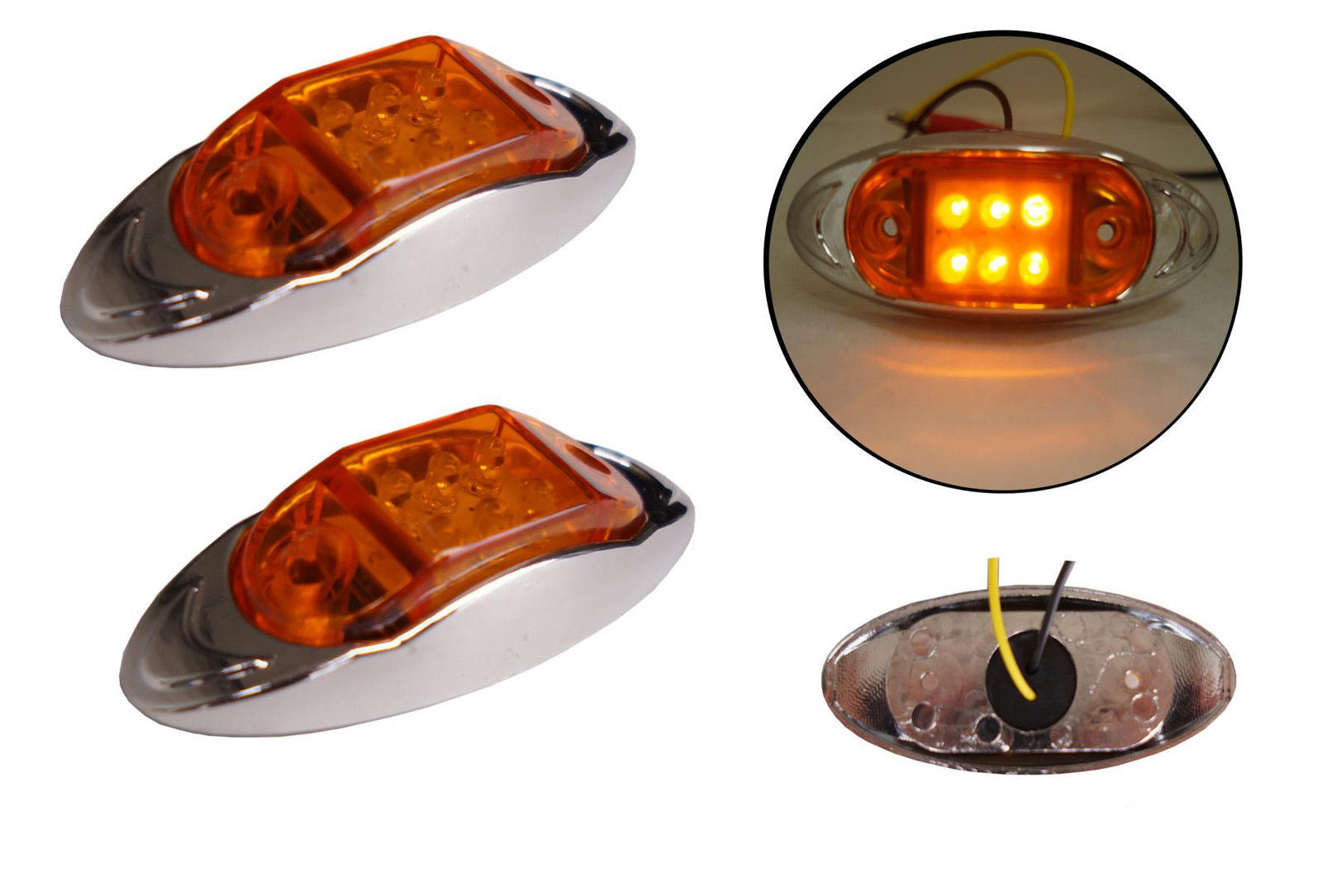 1бр 24V ОРАНЖЕВ - 6 LED диоден страничен маркер / токос - габаритна светлина за камиони, тирове и ремаркета - 100мм х 42мм - хромиран корпус