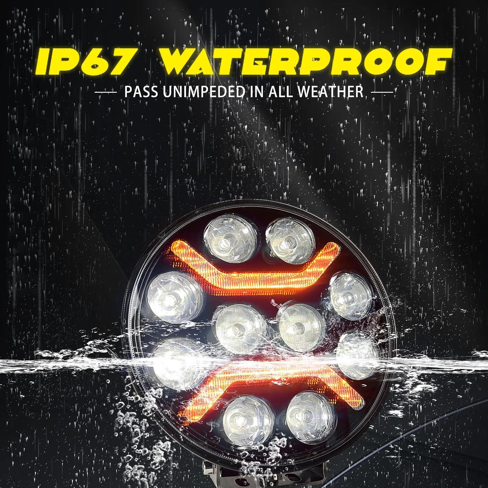1бр Универсален LED + DRL Фар, бял+оранжев габарит Ø230 мм 12V/24V