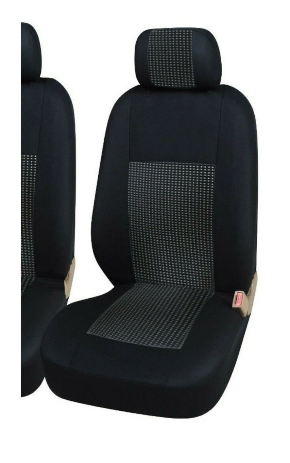 Калъфа на мястото за водача е предвиден за подлакътник, т.е. при наличие на такъв не ви ограничава достъпа до него. Пътническите калъфи за два (по един за всяка седалка), така че лицата да имат достъп до всяко място около седалките, под тях и калъфите да не пречат за използването на колани, закопчалки, подвижната облегалка между двете седалки. Пакетът съдържа: - 3 броя калъфи всеки с отделен подглавник изработени от двойно подплатен висококачествен дишащ текстил - лукс - цвят: черен