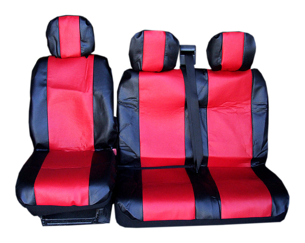2 + 1 УНИВЕРСАЛНИ КАЛЪФИ, ТАПИЦЕРИЯ ЗА ПРЕДНИ СЕДАЛКИ ЗА АВТОМОБИЛ ЗА БУС ОТ ЕКО КОЖА , ЦВЯТ ЧЕРВЕНО-ЧЕРНО